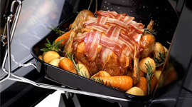 The Handyrack attaches to the main oven door, pulling the roasting tray out for easy access. It holds up to 5.5kg.
