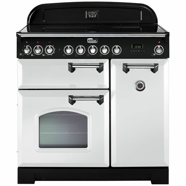 Falcon 90cm Classic Deluxe Freestanding Induction Oven/Stove White and Chrome CDL90EIWHCH