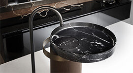 Crafted from black marble, the basin delivers a rich and sophisticated finish. The natural material enhances durability while providing a timeless and luxurious aesthetic.