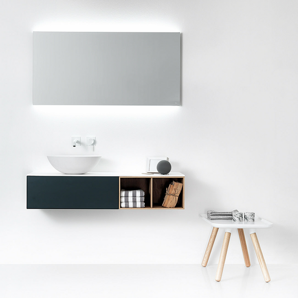Designed by Fattorini + Rizzini for Falper, the Ciotola 1200mm Grey and Oak Cabinet with Ciotola Basin is delicate in appearance yet durable in function. Crafted in 4mm matt white Ceramilux, the basin is highly resistant to heat, acids and scratching, beautifully contrasting the grey and oak cabinet.
