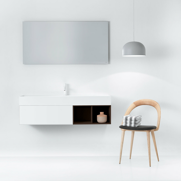 Falper Matt White Quattro Zero 1200mm Basin with Side Countertop and Integrated Burned Walnut Cabinet - 3752001242