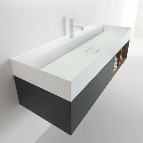 Falper Matt Grey Quattro Zero 1200mm Basin with Side Countertop and Integrated Oak Cabinet - 3752001241