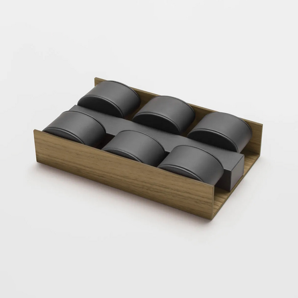 Accessory for drawers in solid Walnut watch holder with width 15 cm, height 5 cm and depth 25 cm.