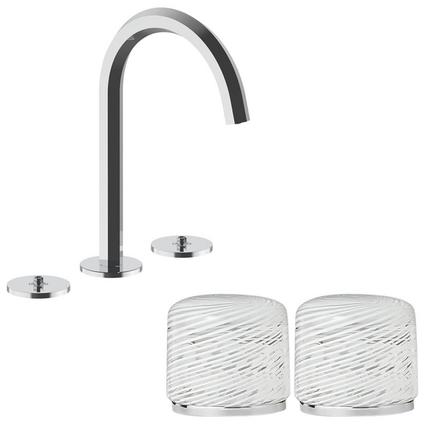 Fantini Venezia by Venini White Filigree Handle Basin Set - Chrome VENBS704CHRVNCP