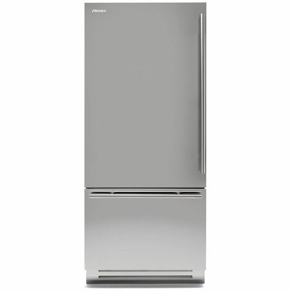 The Fhiaba 525L Bottom Mount Fridge provides an innovative refrigeration solution with a sleek design with fresh aesthetics and tubular brushed stainless steel handles.