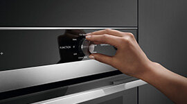 The exterior of the oven door is designed to stay cooler to the touch, for a safer kitchen environment. The brushed stainless steel finish with black glass looks highly attractive and is designed to match the rest of Fisher & Paykel’s kitchen appliance family.