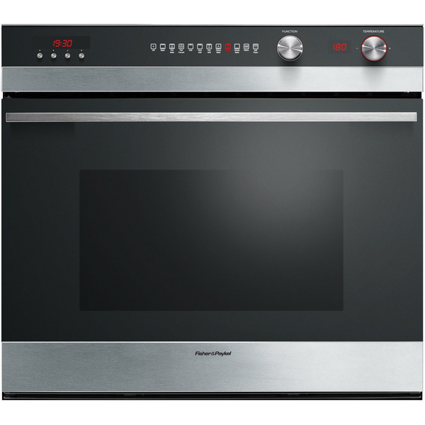 The door is quadruple glazed to ensure high efficiency within the oven, plus it keeps the exterior of the door cool to the touch. The brushed stainless steel finish and modern styling looks highly attractive and is designed to match the rest of Fisher & Paykel’s kitchen appliance family.
