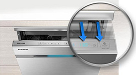 In some dishwashers you need to open the door at the end of each washing and drying cycle to allow the steam to escape so the dishes can stay dry. This Samsung dishwasher opens its own door when its cycles are complete meaning you don't need to hang around waiting for a cycle to end if you want dishes that can be put away immediately without excess hand-drying.