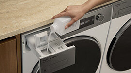 FlexiDose automatic dosing removes guesswork from laundry day, dispensing the optimal amount of detergent and softener for each load while protecting sensitive fibres like Down. Two flexible reservoirs store enough detergent for up to 21 washes, while Active Mix blends detergent with water before it reaches the drum for deeper, more even cleaning.