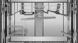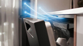 For effective drying, the dishwasher door automatically opens at the end of the cycle to help remove excess moisture, while an air curtain channels steam out into the room safely, protecting cabinetry.