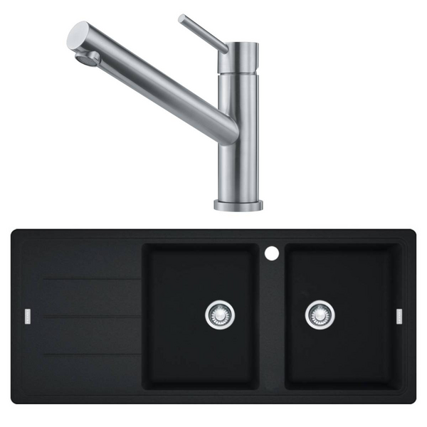 Franke Basis Double Bowl Topmount Sink with Left hand Drainer and Orbit Tap Pack - Onyx BFG621LTA9200ON