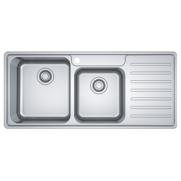 Designed with versatility in mind, this sink features a top-mount installation and a semi-integrated waste outlet for a seamless look. Its dual bowl configuration, with a left or right hand drainer option, offers ample space for washing, rinsing, and drying. The food preparation centre and fast-fix installation make it a practical solution for busy kitchens, while the sound deadening pads ensure a quieter experience. With a 50mm bowl radius, the Franke Bell sink combines style and functionality, providing a timeless centrepiece for any kitchen.