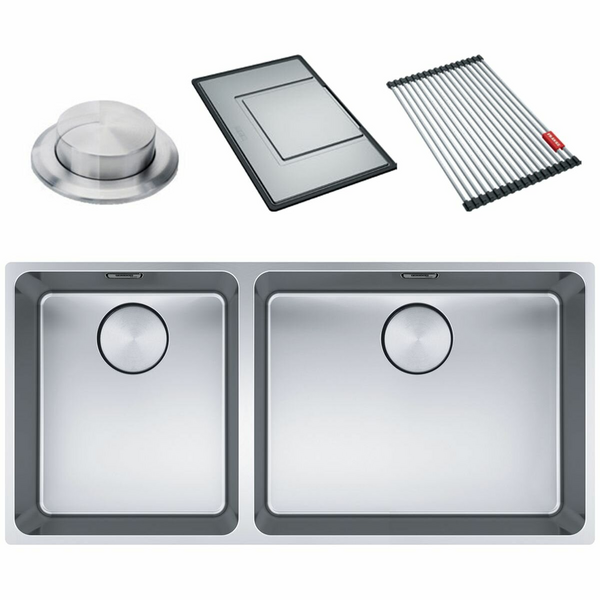 Franke Mythos 500/340mm and 1 and 1/2 Bowl Left 3 Way Installation Sink with Accessories MYX220-5034FPCSBL