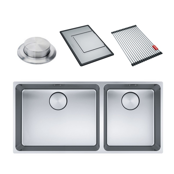 Franke Mythos 500/340mm and 1 and 1/2 Bowl Right 3 Way Installation Sink with Accessories MYX220-5034FPCSBR