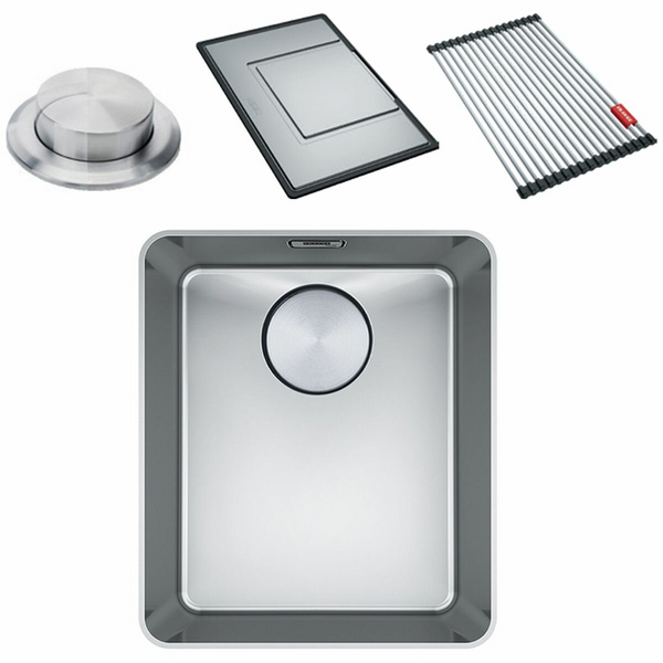 This sink includes thoughtful accessories to enhance your kitchen experience, such as the Push-Button Waste Kit for hygienic and hands-free waste control, a Rollmat for drying dishes or rinsing produce, and an Extension Drainer for added convenience. Designed for versatility and efficiency, this Mythos sink blends practical features with refined craftsmanship, perfectly suited for the demands of a busy kitchen.