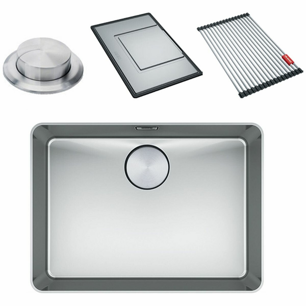 This sink includes thoughtful accessories to enhance your kitchen experience, such as the Push-Button Waste Kit for hygienic and hands-free waste control, a Rollmat for drying dishes or rinsing produce, and an Extension Drainer for added convenience. Designed for versatility and efficiency, this Mythos sink blends practical features with refined craftsmanship, perfectly suited for the demands of a busy kitchen.