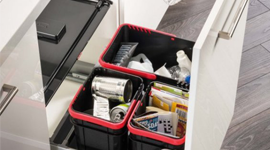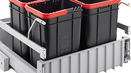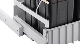 The system can be mounted on a standard cabinet side wall, and it gently slides out whenever you open the cabinet door. Thanks to a soft-close mechanism, you won’t have to worry about slamming the door and compromising the system. The two spacious bins can be split up into general waste and recycling, and each is fitted with a handle for securing waste bags. The roll-out carrier is completely waterproof, simple to take apart, and easy to clean.
