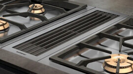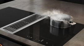 This motorless system can be combined with Gaggenau BLDC remote fan units, providing highly efficient ventilation and advanced interior performance. Designed for surface installation with a visible edge or flush installation, it offers versatile integration into any kitchen layout. With cooktop-based ventilation control, remote control and monitoring, remote diagnostics, and Home Connect integration via LAN, this downdraft system brings cutting-edge technology and convenience to your culinary space.
