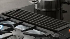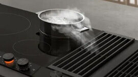 The Gaggenau 200 Series Vario Downdraft System features automatic power regulation with advanced sensors, ensuring optimal ventilation performance. Its compact 15 cm width and highly efficient operation make it a seamless addition to any kitchen, removing vapour, smell, and heat directly at the source.