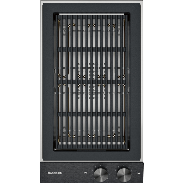 The Gaggenau 200 Series Vario Electric Grill offers two cooking zones that combine into one large area, providing flexible grilling options. With precise temperature control up to 240 °C and an open cast grill with lava stones, you can achieve perfect, evenly cooked meals every time.