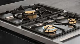 The Gaggenau 400 Series Vario Gas Cooktop offers 12 electronically controlled power levels for exact heat settings. From fast ignition to ultra-low simmer, it ensures precise and consistent cooking. Automatic re-ignition adds safety and convenience, making every cooking experience smooth and reliable.
