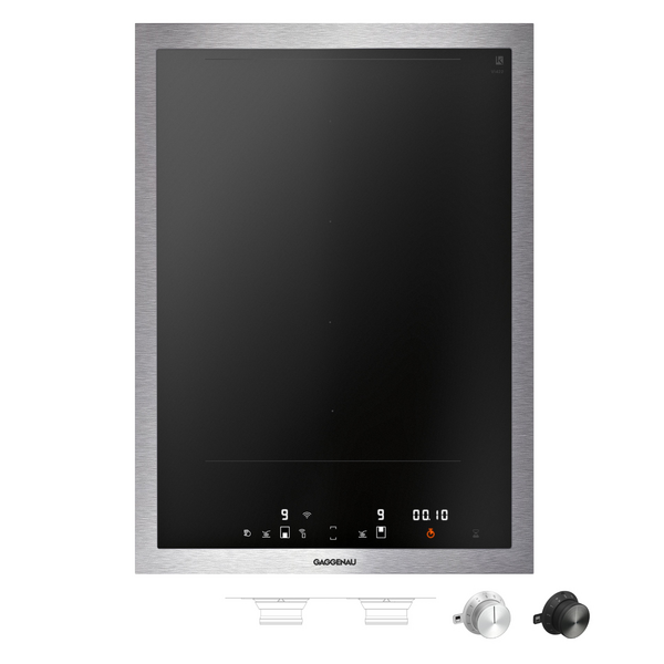 This cooktop is equipped with Home Connect for seamless smart home integration, and it offers user-friendly control with a bicoloured display and electronic power control across 12 output levels. Available with a solid stainless steel or black control knob (purchased separately), it can be surface-mounted with a visible edge or flush-mounted for a seamless look. The Gaggenau 400 Series ensures a blend of style and precision for your culinary needs.