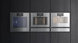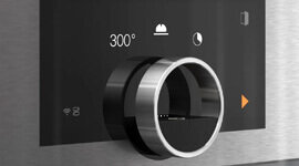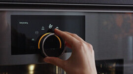 A floating stainless steel control ring commands an array of refined functions, from the powerful bottom heat system and full-surface enamelled grill to the three-point core temperature probe. Intelligent programs recommend precise settings for flawless results. With pyrolytic self-cleaning and an advanced heated catalyser, performance endures while the kitchen remains fresh.