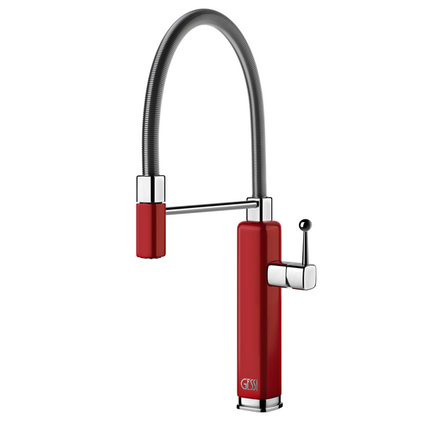 Retro detailing such as the rounded edges and playful lever handle adds character to any kitchen space. Designed and manufactured in Italy, this kitchen mixer combines sophisticated design and functionality. The handy 360 degree rotation spout lets you adjust the mixer to your needs. The pull-out tap enables greater movement for accurate cleaning, and makes washing bulky pots and pans less of a hassle.