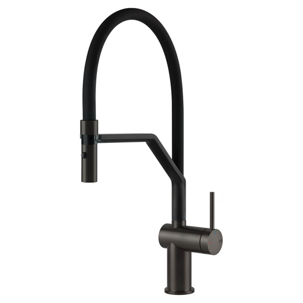 Gessi Inedito Semi-Professional Spray Kitchen Mixer Tap Brushed Black 60429-707