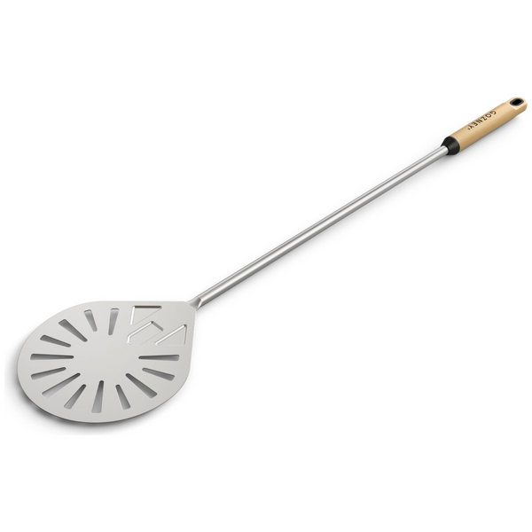 The 203mm (8") pressed and welded stainless steel blade provides strength and durability while ensuring a smooth, snag-free experience. Its perforated design allows excess flour to fall away, preventing bitter, burnt flavors and helping you achieve beautifully crisp crusts every time. The teardrop shape enhances the natural turning motion, making it easier to rotate pizzas quickly and accurately.