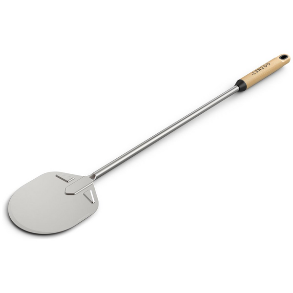 Crafted with a 152mm (6") welded stainless steel blade, the peel is sturdy enough to lift pizzas with ease while maintaining precise balance. Its chamfered edge allows for smooth sliding under dough, making turning and repositioning pizzas quick and efficient. The wide blade also makes removing pizzas from the oven simple, transferring them neatly from the stone floor to your serving board.