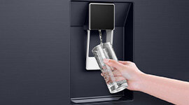 The fridge's convenient water dispenser with refillable tank eliminates the need for plumbing your refrigerator and ensures you always have access to chilled water. The Multi-Zone Air system evenly circulates cool air throughout the fridge, maintaining a stable temperature for ideal food storage conditions. Fruits and vegetables are kept fresh and flavourful in the Humidity Zone crisper drawer.