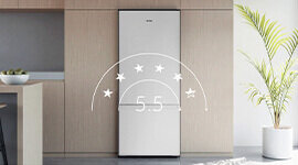 Say goodbye to wilting produce, thanks to the Humidity Control System in the dedicated drawer. It maintains optimal humidity levels, preserving the flavour and vibrancy of your fruits and vegetables. Designed with energy efficiency in mind, this refrigerator boasts an impressive 5.5-star energy rating, helping you save on power bills while keeping your food fresh.