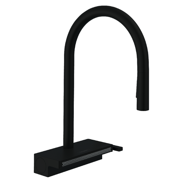 At the heart of its design is a high arc spout that not only provides ample clearance for large pots and pans but also serves as a visual statement, combining sleek angles and smooth curves for a sophisticated aesthetic. The tap includes a pull-out spray function that effortlessly switches between SatinFlow and a powerful laminar or shower spray with the press of a button, offering versatile water flow for different kitchen tasks.