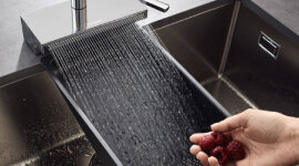 The SatinFlowSpray type is an additional water flow option to cater to your kitchen needs. The micro-fine, resource-saving spray can be used to gentyle rinse sensitive foods such as fresh berries and herbs. The wide water spray flows from the base of the tap, causing very little splashback in the sink.
