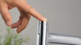 This tap features AirPower to ensure more volume due to air admixture. The enriched drops are luscious, light and soothing on the skin and fall back in the washbasin with less splashing.