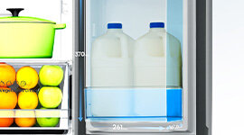 A big door balcony lets you safely store bigger and taller items inside the door. It can handle bulky cartons of milk and juice, as well as two rows of drink cans and bottles.
