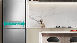 Maximise your kitchen space effortlessly with this slim French-door design. The stylish PureFlat design seamlessly complements even the most compact kitchens - giving you all the room you need.
