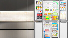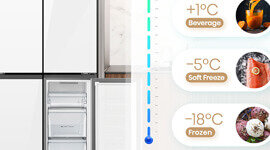 Behind the elegant doors lies a highly adaptable interior. Its triple-zone configuration, including the My Fresh Choice drawer, offers tailored temperature control from chilled to frozen. Dual-Tech Cooling and Multi AirFlow systems preserve ingredients at their peak, ensuring everything from leafy greens to delicate dairy maintains ideal freshness. Storage is generous yet considered, with wide shelving, XXL door balconies, and a deep freezer drawer built for the demands of everyday life.