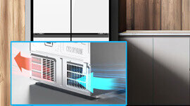 The Underside Diversion Cooling System channels cold and hot air independently from the rear of the unit, reducing the need for clearance on either side. A clever design that maximises usable space and improves energy performance.