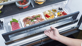 Everyday convenience is enhanced through auto-opening drawers for smoother access and easier organisation. In the freezer, dedicated freezing functions with sensor control and an aluminium tray help freeze food faster while reducing ice crystal formation, supporting better texture after thawing. Paired with dual fan cooling, an efficient inverter compressor, LED illumination, and tempered glass shelving, the R-GW670TA delivers a refined storage experience that supports busy routines while keeping ingredients in their best condition.