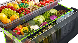 For produce, the Aero-care Vege Compartment is engineered to help sustain freshness and nutrients. Its airtight design helps control humidity, while the Platinum Catalyst environment supports better retention of vitamins and moisture so fruit and vegetables stay crisp and appealing. In the main refrigerator space, Moisture Cooling chills the compartment evenly at cooler temperatures with higher humidity, helping reduce dehydration and maintain flavour.