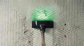 Seven white and green LED lights illuminate the cleaning path, revealing fine dust that often escapes the eye. Visibility is enhanced across both bright and low light environments, ensuring no detail is missed. This focused illumination brings clarity and precision, supporting a more meticulous and confident clean.