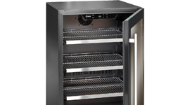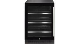 | Features | ● Stainless steel door fascia ● Tinted glass door ● 3 layered glass door ● Black body, handle & Interior ● 146 litres net ● 142 cans ● Door lock / child lock ● Built-in or Freestanding ● 2–10°C temperature range ● >65% humidity ● White LED temperature display ● Temperature alarm ● Temperature memory setting ● Touch control ● R600a refrigerant ● Compressor cooling system ● Frost free ● Anti-UV glass ● 3 x wire shelves |