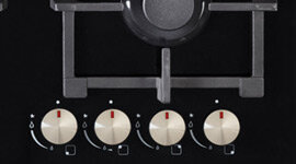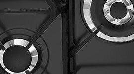 Quick and safe automatic electronic ignition makes igniting your flame simple, just by turning the control knobs at the front of the cooktop. Durable cast iron trivets comfortably and stably support your cookware.