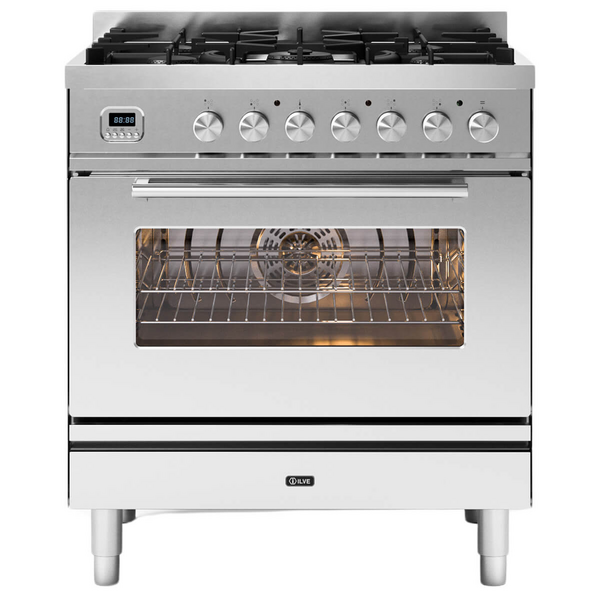 ILVE Professional Plus 80cm 5 Burner Freestanding Dual Fuel Oven/Stove Stainless Steel P08DWE3SS