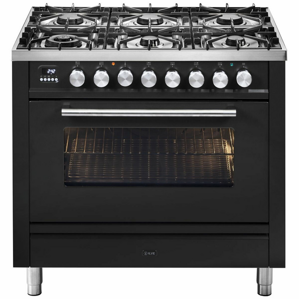 ILVE Professional Plus Series 90cm Dual Fuel Five Burner Double Oven with Milano Knobs PD09PDWE3BK