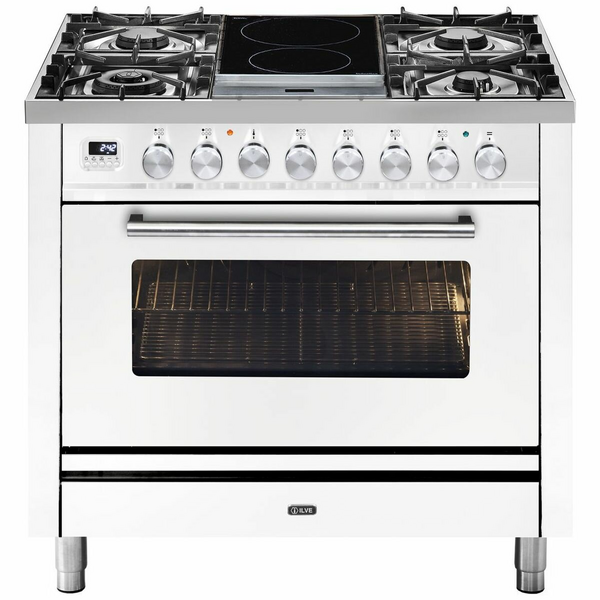 ILVE Professional Plus Series 90cm Dual Fuel Induction Freestanding Oven with Milano Knobs P09IDWE3WH