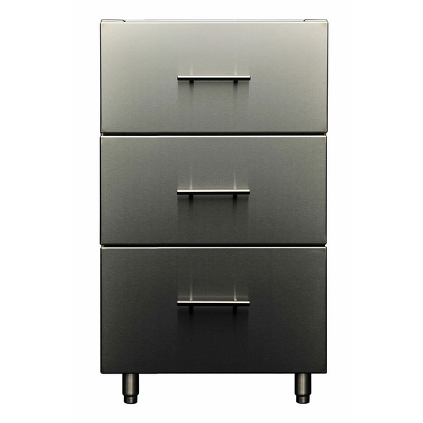 Mix and match your cabinets to suit your outdoor cooking needs with the Kalamazoo Signature Series cabinet range. This 18-inch base cabinet allows you to keep your outdoor kitchen tidy and organised with three separate drawers. The timeless design of this range elegantly complements your Kalamazoo grills and other Signature Series cabinets. The weather-tight design protects your items from the elements and the full-extension drawers keeps utensils and ingredients on hand while you cook and entertain. Installation is a breeze thanks to the uniform 30-inch depth and the stainless steel leveling legs. The robust 304-grade stainless steel construction is easy to clean and is built to withstand heavy use. Handcrafted in Michigan, USA by expert craftspeople, this Signature Series cabinet is long-lasting and meticulously constructed to complete your dream outdoor kitchen.