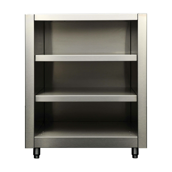 Mix and match your cabinets to suit your outdoor cooking needs with the Kalamazoo Signature Series cabinet range. This open shelf 24-inch model provides ample room for your outdoor kitchen supplies with three spacious shelves so you always have what you need on hand. The timeless design of this range elegantly complements your Kalamazoo grills and other Signature Series cabinets. Installation is a breeze thanks to the uniform 30-inch depth and the stainless steel leveling legs. The robust 304-grade stainless steel construction is easy to clean and is built to withstand heavy use. Handcrafted in Michigan, USA by expert craftspeople, this Signature Series cabinet is long-lasting and meticulously constructed to complete your dream outdoor kitchen.